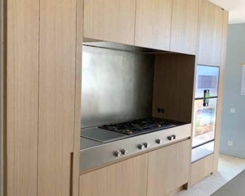 Ce client a choisi un plan de travail et des bordures en inox pour sa cuisine.