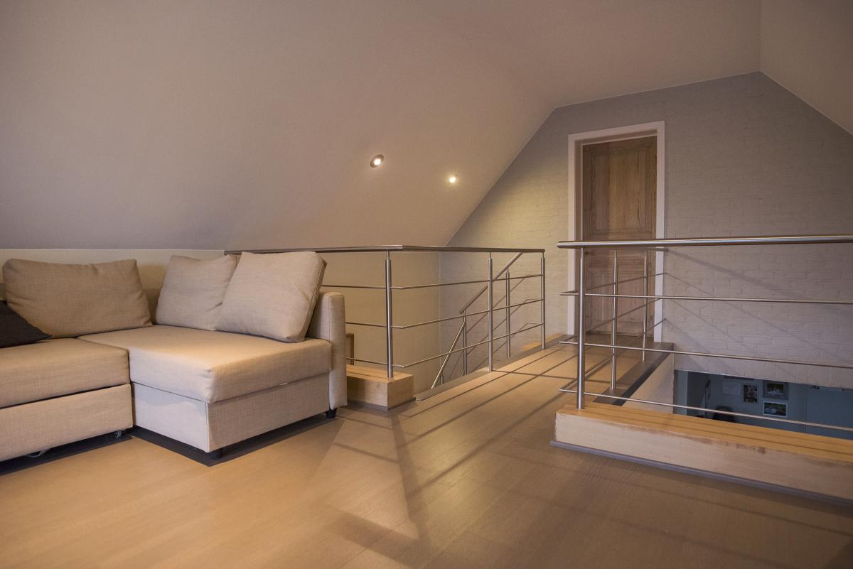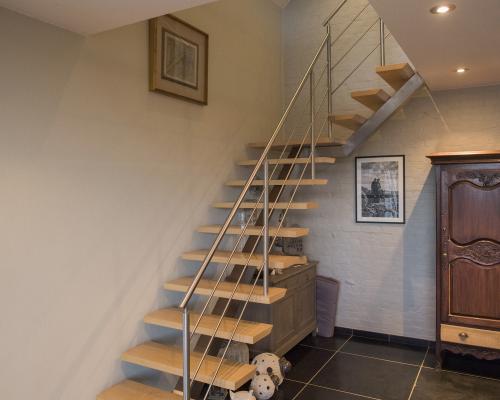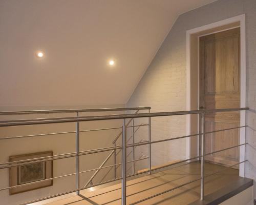 La rampe et la balustrade en inox de cette maison comporte 3 poteaux horizontaux. Notez la finition des bords.