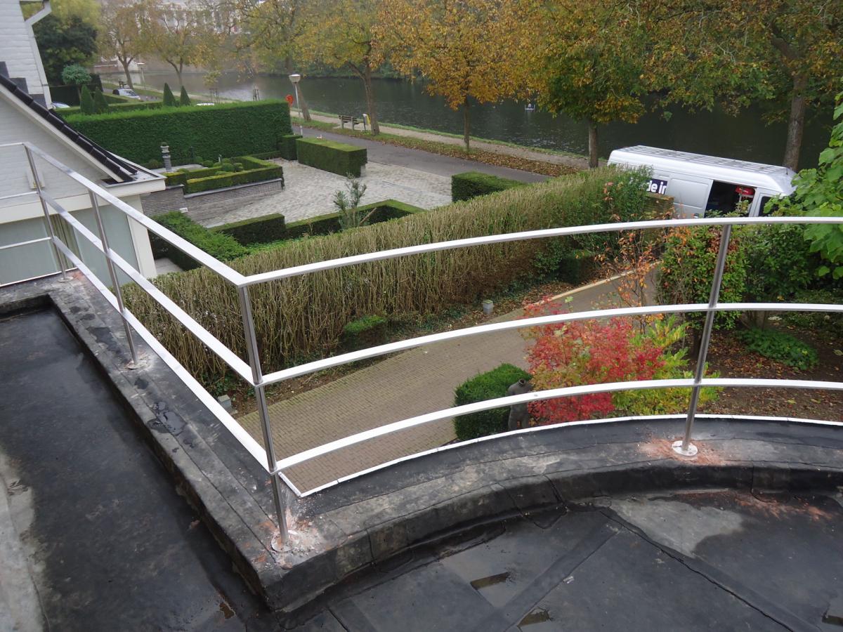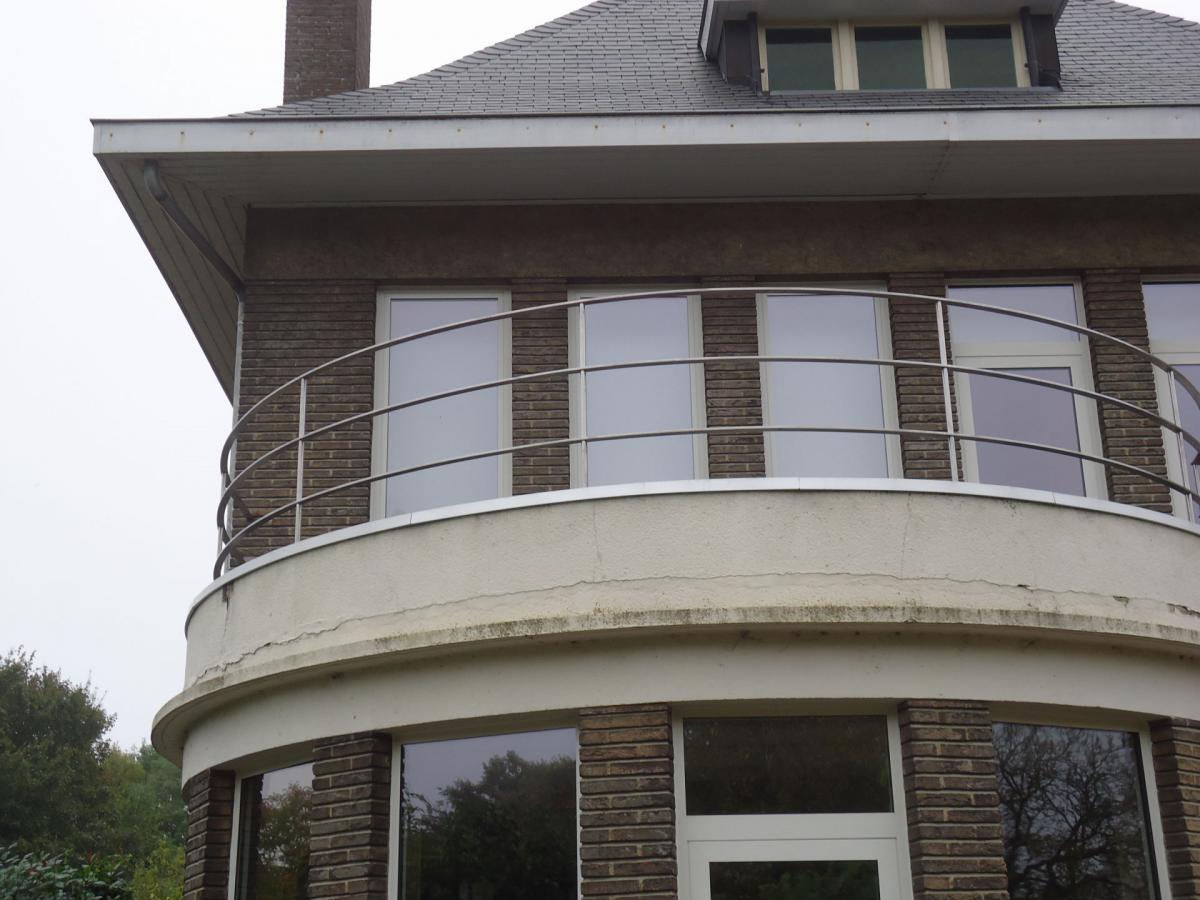 La forme ronde de cette balustrade d'balustradeextérieure en inox lui donne un aspect particulier. Notez les interstices plats.