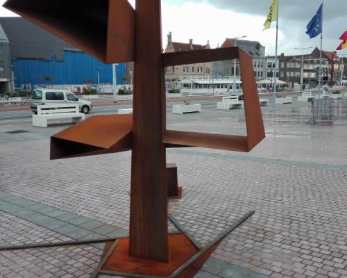 Nous avons réalisé cette œuvre d'art en acier Corten pour la ville de Nieuwpoort. Il peut être consulté au marché aux poissons.