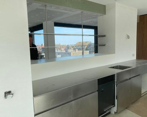 37925-37845 Keuken - Particulier - Inox - Excentrisch - Werkblad - 1 spoelbak - Zijwand - Frontbekleding kasten