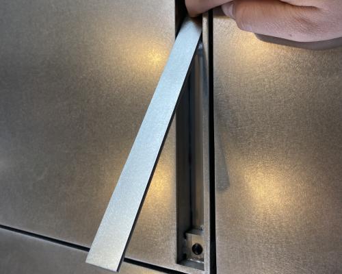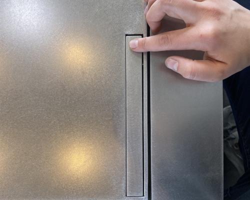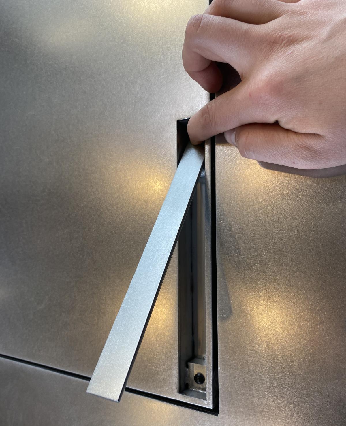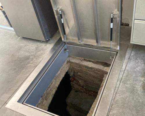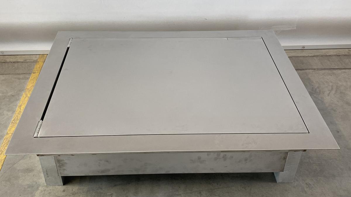 Het vloerluik is afgewerkt met een plaat dat excentrisch geschuurd is en het wordt manueel geopend met gasdrukveren.