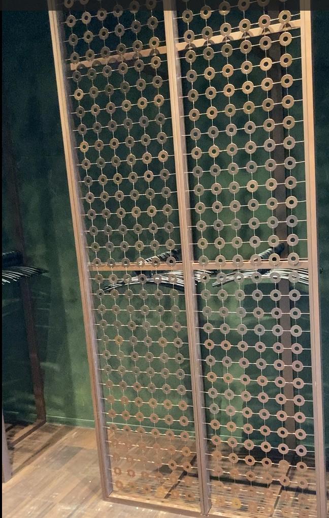 De vestiaire is afgeschermd met gelakte stalen kaders. Een samenwerkingsproject met Minus Poperinge.