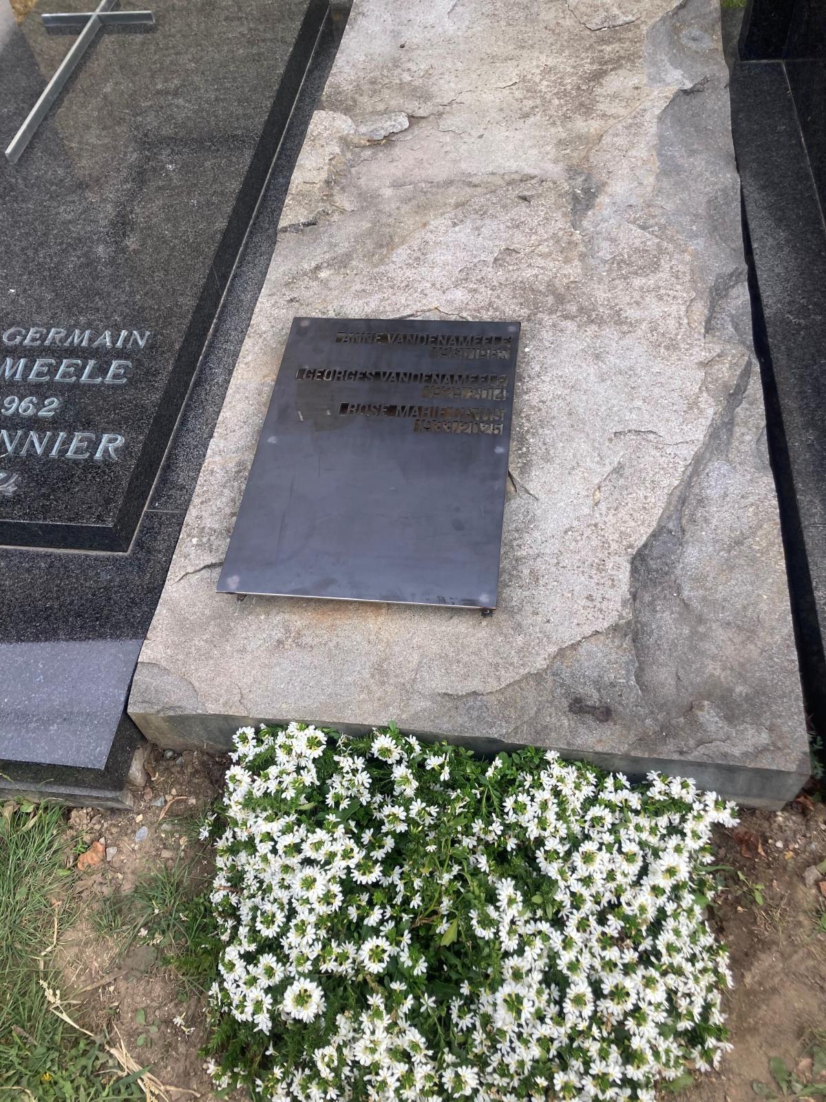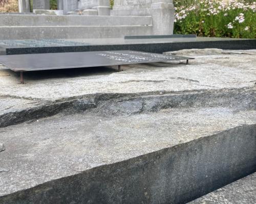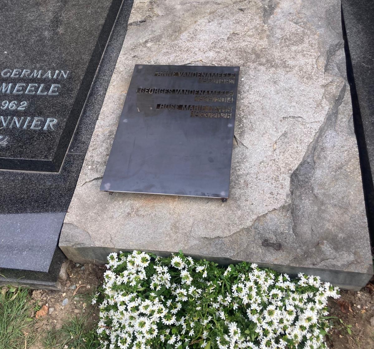 De gedenkplaat in cortenstaal heeft uitgesneden belettering.