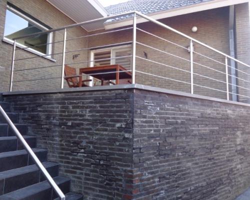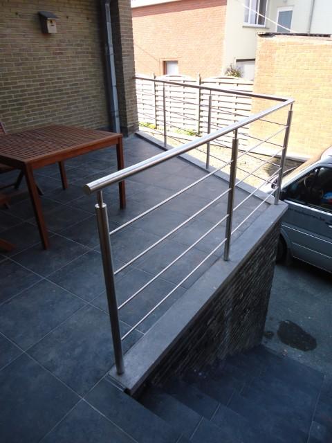 Deze inox buitenbalustrade met 4 horizontale tussenstijlen zorgt voor de nodige veiligheid.